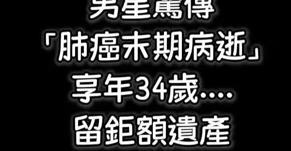 他深夜走了!男星驚傳「肺癌末期病逝」享年34歲....留鉅額遺產!