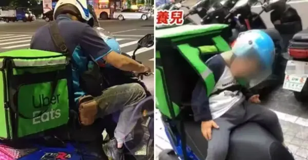 3歲兒揹保溫袋睡著,年輕爸獨抗家計「日做鐵工9小時、晚上外送到淩晨」 樂觀笑「會咬牙撐下去」:謝兒懂事幫忙