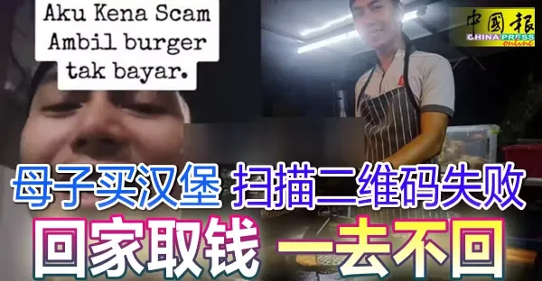 母子買漢堡 掃描二維碼失敗 回家取錢 一去不回