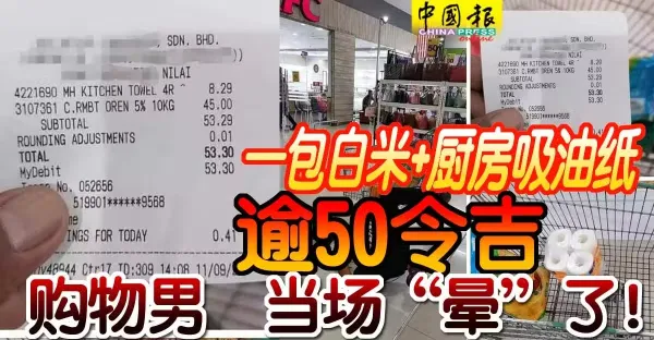 一包白米+廚房吸油紙 逾50令吉 購物男 當場「暈」了!