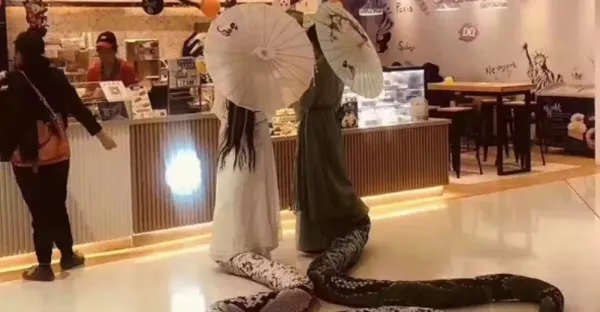撞見青蛇白蛇買飲料!轉過身「正臉美到讓人瞬間戀愛」😍 #1樓看絕美真面目 #尾巴還會擺動