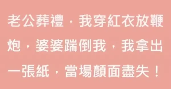 老公葬禮,我穿著紅衣放鞭炮,婆婆氣到踹倒我,我拿出一張紙,讓她當場在親戚面前丟光面子!