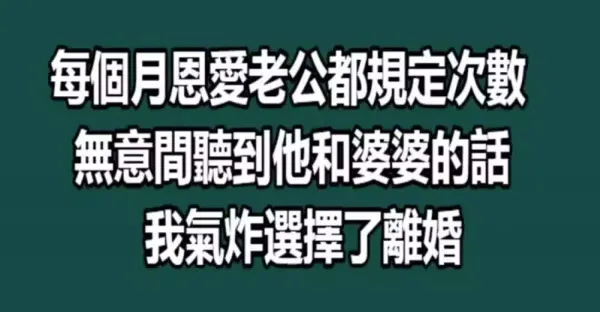 每個月恩愛老公都規定次數,無意間聽到他和婆婆的談話,我氣炸選擇了失婚!