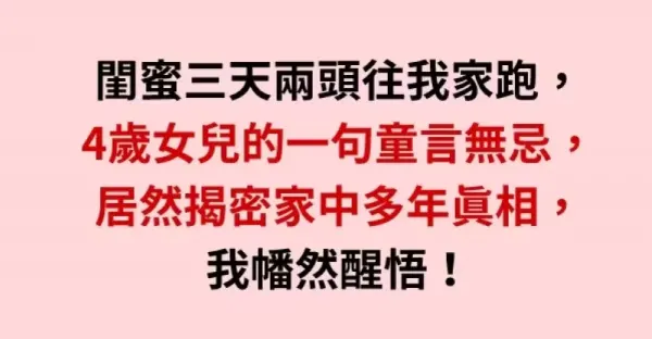 閨蜜三天兩頭就往我家跑,4歲女兒的一句童言無忌,居然揭密家中多年真相,我幡然醒悟