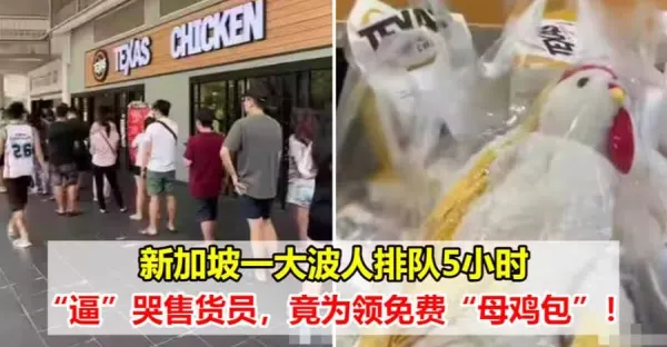 Texas Chicken店外無數人在排隊,只為了拿免費包包,但他們好像低估了新加坡人的「瘋狂」