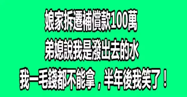 娘家拆遷補償款100萬,弟媳說我是潑出去的水,我一毛錢都不可以拿,半年後我笑了!
