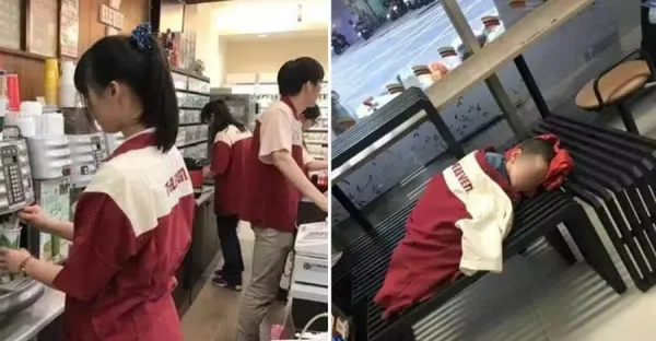 爸爸店外施工,小孩便利店長椅熟睡,店員暖心蓋制服「我也是這樣長大的」一張圖感動上萬網友:酸了鼻子