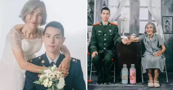 24歲鮮肉消防員「差61歲婚照」爆紅 揭內幕網鼻酸:她給了我第二次生命!