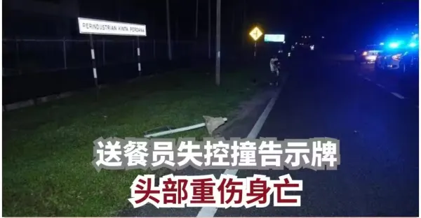 送餐員失控撞告示牌 頭部重傷身亡