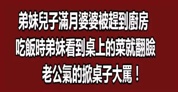 弟妹兒子滿月婆婆被趕到廚房,吃飯時弟妹看到桌上的菜就翻臉,老公氣的掀桌子大罵!