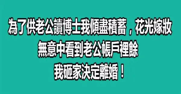 為了供老公讀博士我傾盡積蓄,花光嫁妝,無意中看到老公賬戶裡餘額,我砸家決定失婚!