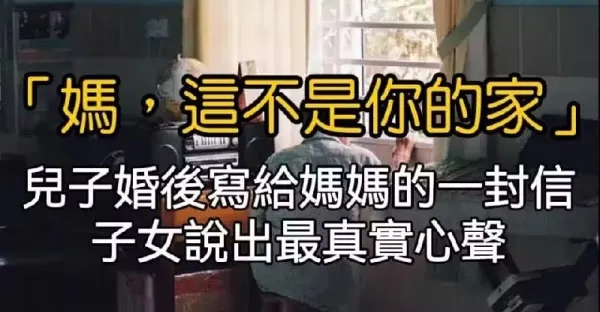 「媽,這不是你的家」!兒子婚後寫給媽媽的一封信,子女說出最真實心聲