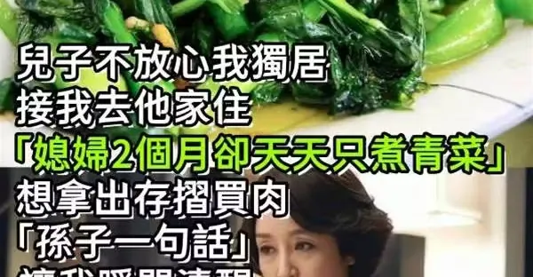 兒子不放心我獨居!接我去他家住「媳婦2個月卻天天只煮青菜」 想拿出存摺買肉「孫子一句話」讓我瞬間清醒~