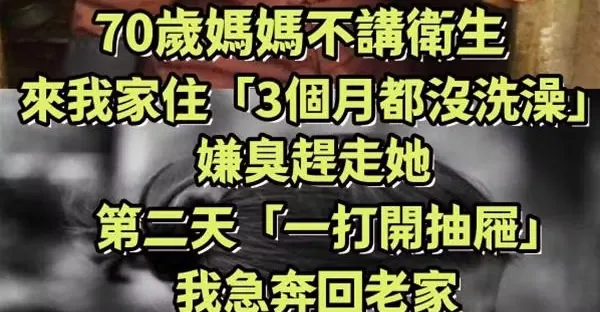 70歲媽媽不講衛生!來我家住「3個月都沒洗澡」嫌臭趕走她,第二天「一打開抽屜」我急奔回老家~