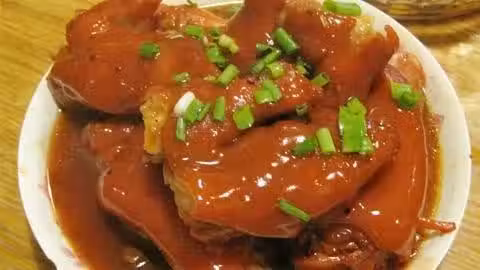 豬蹄;冰糖;干辣椒;蔥;姜;桂皮;八角;花椒;老抽;料酒;植物油