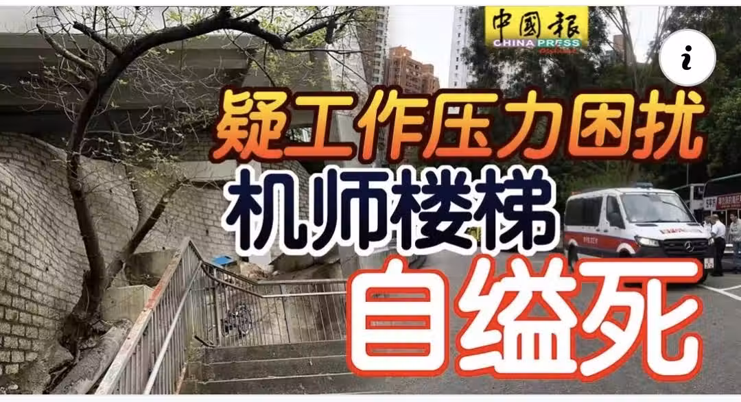疑工作壓力困擾 機師樓梯 自縊死