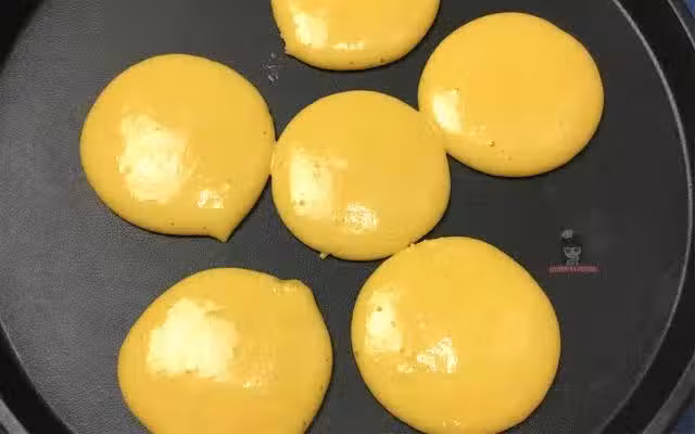 5、現在我們可以烙小玉米餅了,電餅鐺燒熱不用放油,如果親們不是不粘鍋的,可以稍稍抹點油。把裱花袋的小尖剪個小口,一定要小口,不要剪大了。
