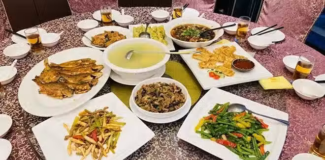 我們一回來就被安排幹活,如今飯菜備好了,也不讓坐下歇歇,非要老公上酒布菜。