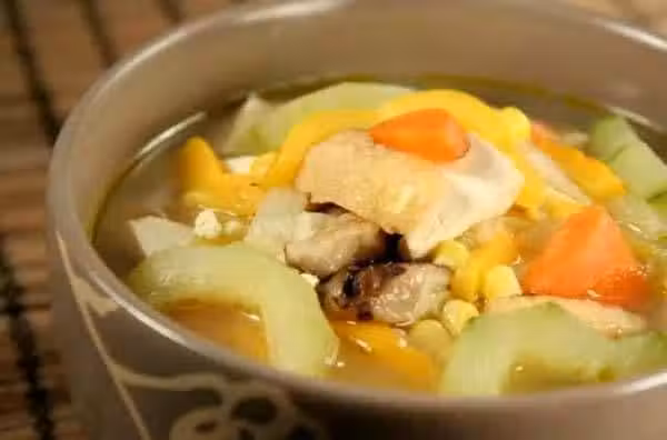 食材:香菇、油豆腐、黃瓜這三種蔬菜是必須的、玉米、青椒、胡蘿蔔等,可以根據自己的喜愛添加蔬菜。