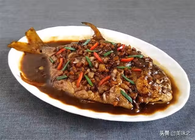 鯧魚1條、姜幾片、蒜頭適量、蔥適量、鹽適量、雞粉適量、生抽適量、老抽適量、料酒適量、生粉適量。