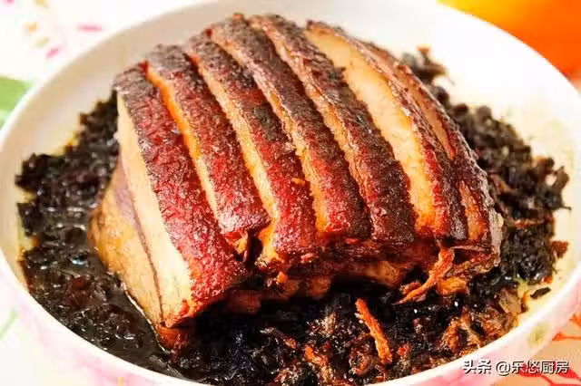 第一步:準備食材。五花肉一方塊(選用肉質較厚的)、梅菜一小碗(梅乾菜要泡足十二個小時,泡好後反覆清洗多遍,去除梅菜中的細紗粒)、蔥、姜。