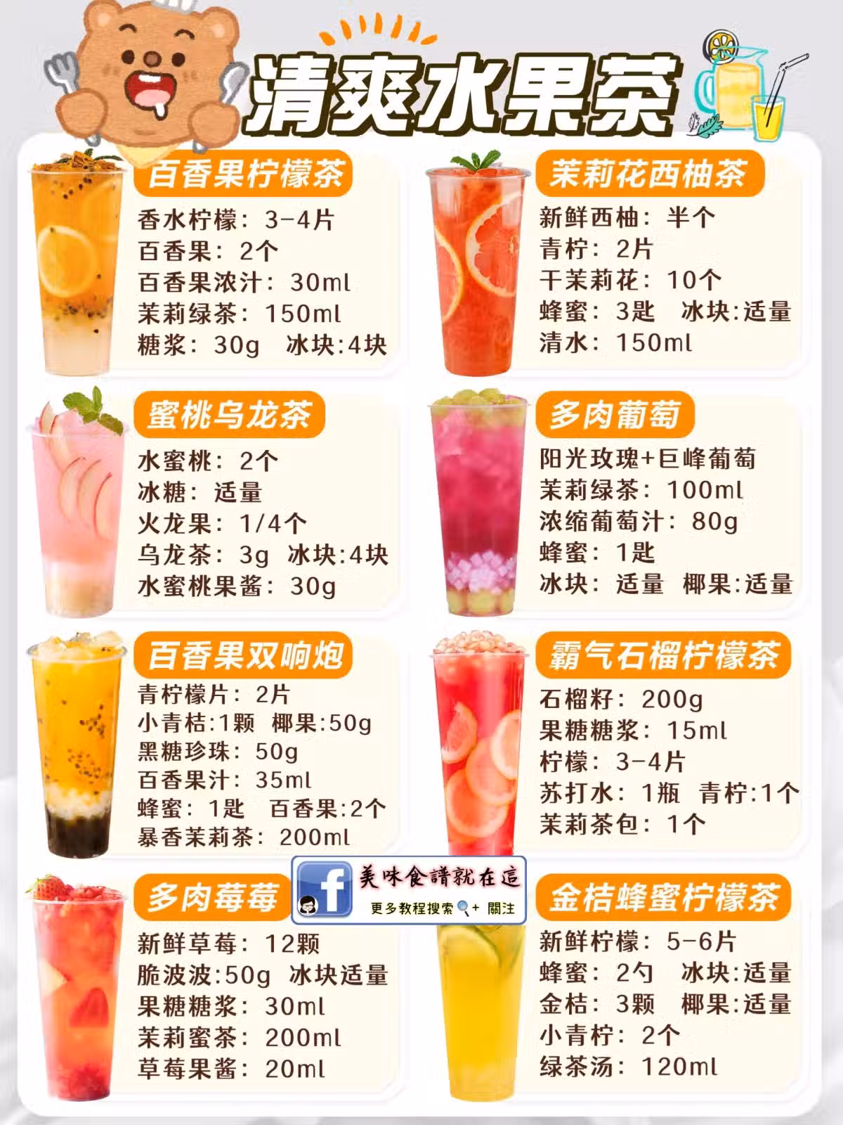 ㊙️【果茶小秘籍】:酸性水果配綠茶,甜的水果配烏龍茶最佳。⚠️水果比例不超過茶水的1/3哦。🍉水果茶搭配可以根據自己的口感喜好隨意添加✅(❤️翻下一頁沒附更多做法❤️)