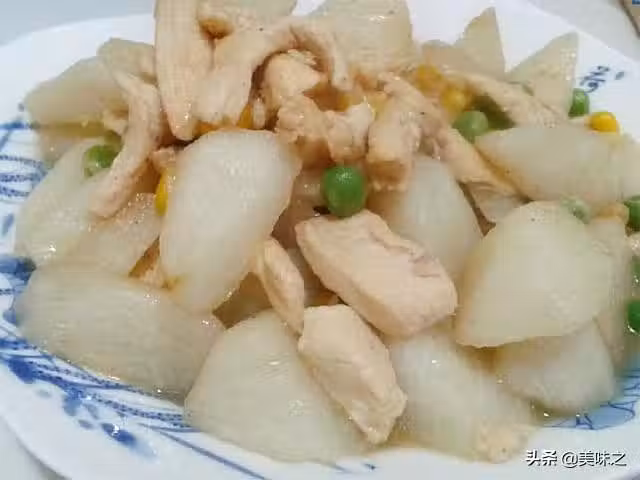 6、放入山藥,放入煮過的青豆和小玉米,好了裝盤。