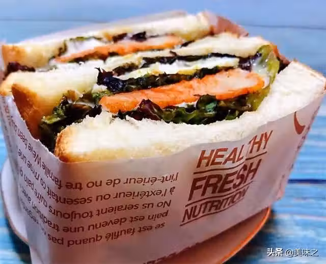 7、再放上生菜淋上沙拉醬最後放上一片吐司壓住。