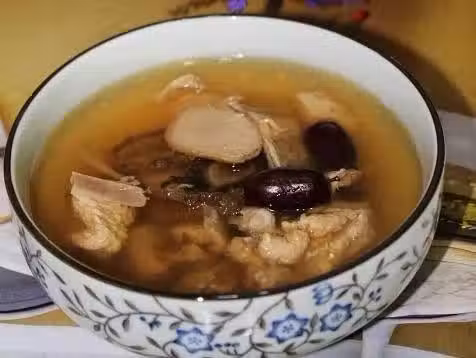 雞650g;人蔘(紅參)30g;田七30g;紅棗7顆;姜適量;鹽適量