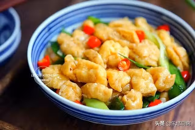 第五步:把油豆腐放入鍋中,翻炒均勻。