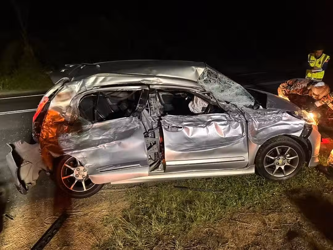 日產轎車的車身嚴重損壞,所幸車上兩名男子無大礙。