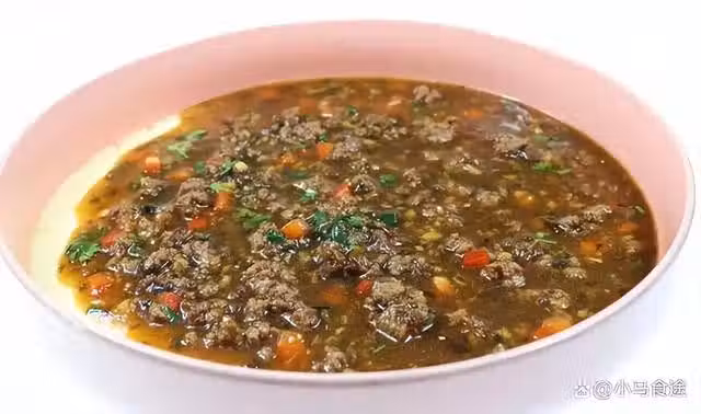 2.起鍋燒油,下入肉末炒酥香,下入小米辣圈、蔥末、少許胡蘿蔔粒煸炒出香味,加入黑胡椒醬,烹入料酒,鹽、醬油,炒入味,添入少許清水燒開,淋入水澱粉收汁,撒入蔥花,出鍋澆在蒸蛋羹上,美味即成。