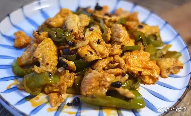 2.起鍋燒油,下入打散的雞蛋液炒熟,,將雞蛋扒拉一邊,再下入尖椒煸炒一下,加入一勺老乾媽豆豉,充分炒勻,盛出即可。