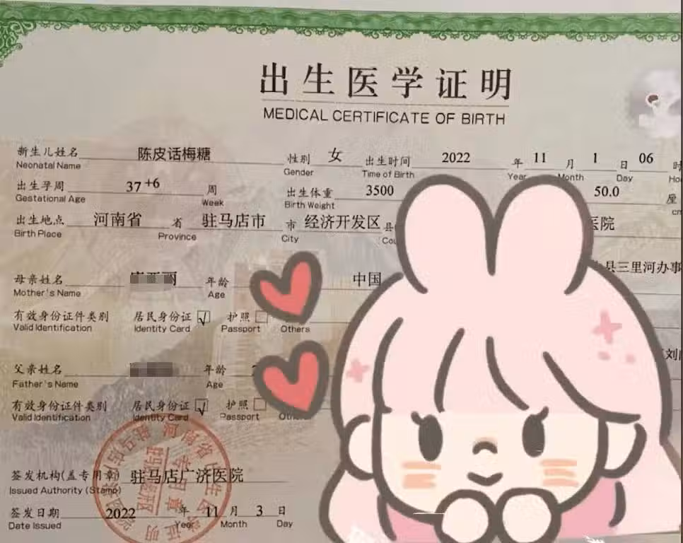 根據中國媒體《搜狐新聞》的報導,中國河南一對年輕夫妻迎來2人第一個女兒,因為男子姓陳、女子姓唐,孩子的媽本來想把女兒的名字取為「陳喜糖」,有爸爸喜歡媽媽的意思,稱這是她懷胎10月苦思冥想出來的。不過孩子的爸想把全家人都放進名字裡,一起呵護寶寶長大,因為奶奶姓梅,於是「陳皮話梅糖」就誕生了。