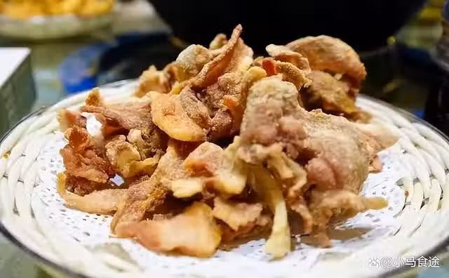 干炸五花肉,五花肉經過腌制,裹粉,炸制,焦香酥脆,嘎嘣好吃。