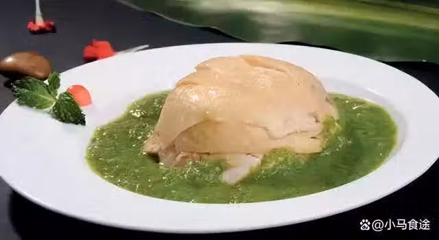 1.凈土仔公雞洗凈,放入冷水鍋內,開火煮熟,撈出迅速放入冰水中浸泡至涼,撈出改刀切成寬2.5厘米的一字長條,放入盤中備用。