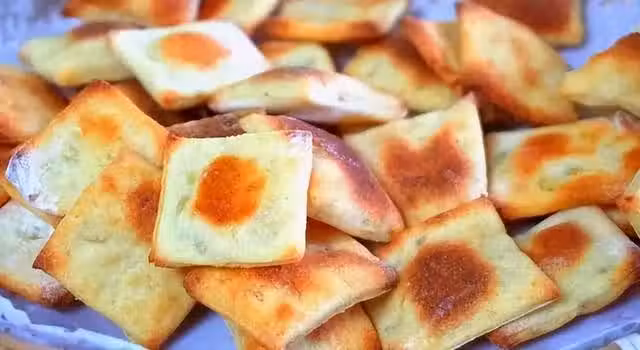 平底鍋預熱刷油,逐一放入菱形面片,烙至兩面金黃鬆軟即可出鍋食用。