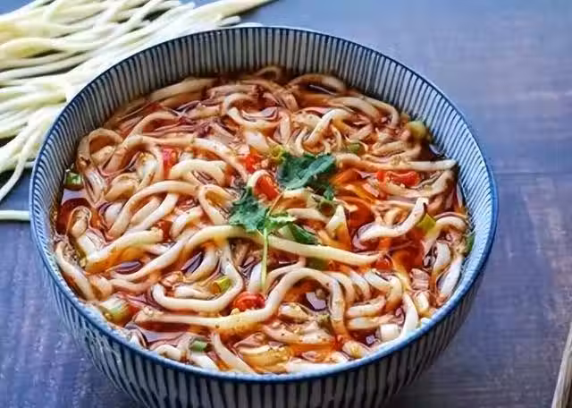 開胃酸湯麵,調製酸湯是關鍵,空碗中加入少許熟豬油、蒜末、蔥末、脫皮白芝麻、小米辣碎潑熱油激香,調入香醋、味精、生抽、鹽攪拌均勻,舀一勺煮麵的原湯,盛入煮熟的麵條,撒上香菜即可享用。