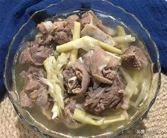 老鴨半隻、筍尖適量、姜適量、料酒適量、溫水適量、雞精少許。