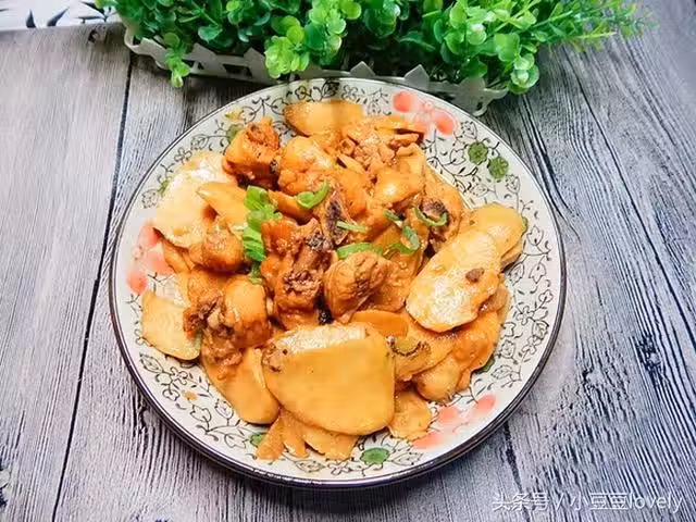 芋頭去皮切片。剁好的雞塊,鍋里加入水加入料酒,煮三分鐘,然後清洗乾淨備用。