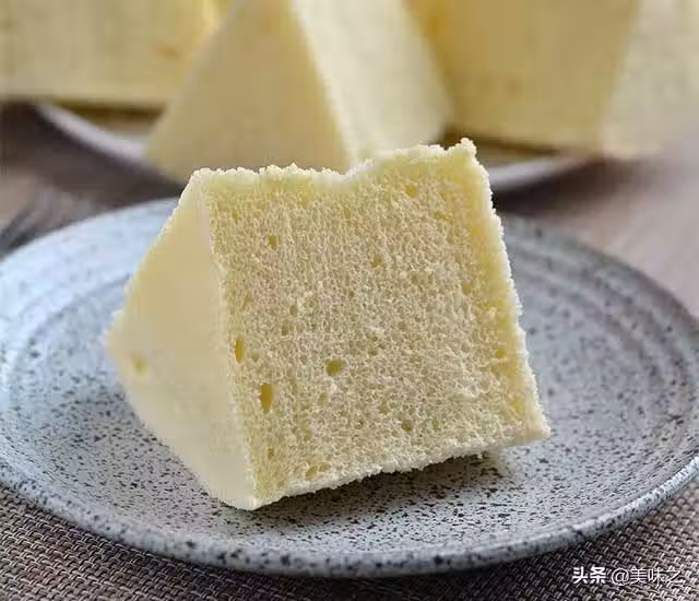 10、蒸好的蛋糕取出,去掉盤子,端起模具在桌面上輕震幾下,使蛋糕中的多餘熱氣散掉。