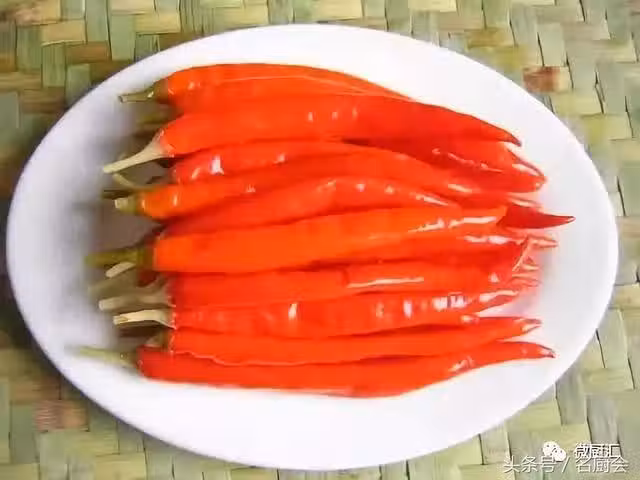 1.先將粗、明礬放放小缸內,加涼開水,攪動,待粗鹽、明礬溶化後,備用;揀無蟲害的紅辣椒洗凈,晾乾,去梗、去蒂,再用尖頭竹籤在辣椒兩旁戳兩個小洞,以便於辣椒入味。再把辣椒放入鹽缸內,用石頭壓實,蓋緊。