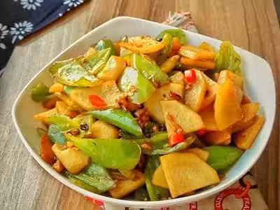 青椒、土豆 、油、鹽、 花椒 、干辣椒、醋、醬油、小米辣、 大蒜