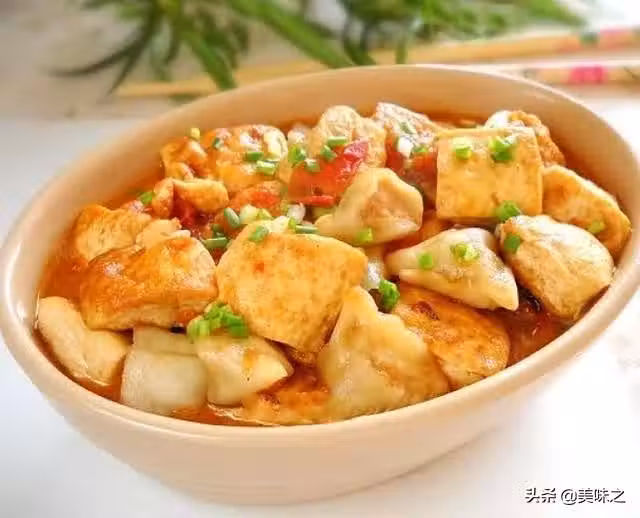 豆腐420克、西紅柿100克、海鮮丸適量、高湯適量、香蔥適量、食油適量、鹽適量、生抽適量。