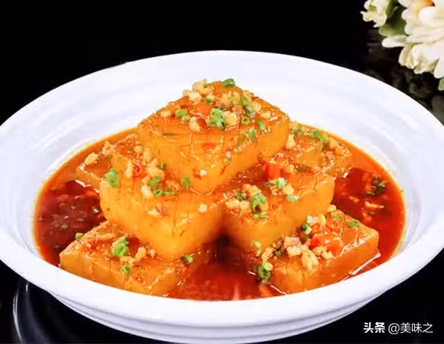 6、將冬瓜夾出裝盤,鍋中湯汁加入適量的雞精,用生粉勾芡至適當濃度關火,將芡汁淋在冬瓜上,美味即成。