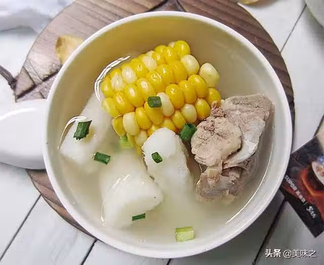 6、過了一小時後,放進薑片,然後再放進玉米、山藥一同煲至熟。