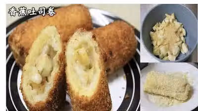 材料: 香蕉,二砂糖 1湯匙(也可用煉奶代替),全蛋 1個,低筋麵粉 1杯,麵包粉 1杯,吐司 3 – 5片