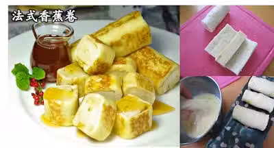 材料: 香蕉 2根,吐司 4片,牛奶 25克,蛋 1個,細砂糖 8克,蜂蜜或煉乳 適量