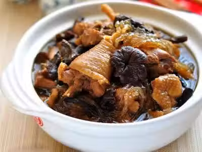 小雞腿8-10個、滑子菇100g、生薑1小塊、八角2-3個、香菇10-15個、大蔥1根、干辣椒5個、鹽二分之一小勺、醬油1大勺、植物油1大勺、糖1小勺、料酒1大勺。