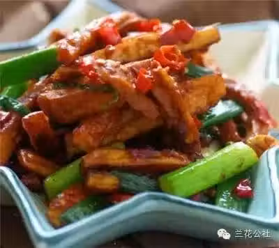 食材:6塊豆乾、30g蒜苗、20g蒜、2個小紅辣椒、1大勺黃豆醬、1小勺生抽、適量糖、適量辣椒醬